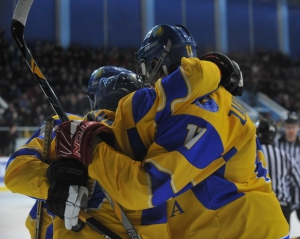 У заключному матчі першого туру юніорського чемпіонату світу з хокею в Дивізіоні IID, який у неділю стартував у Донецьку, збірна України в заповненому практично під зав'язку ПС "Дружба" (3426 глядачів) розгромила команду Бельгії - 12:1.