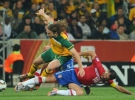 Збірна Австралії з рахунком 2:1 обіграла команду Сербії в матчі третього туру групового раунду чемпіонату світу з футболу-2010. Таким чином, австралійці набрали чотири очки, як і збірна Гани, яка програла німцям, але через гіршу різницю м"ячів австралійці посідають третє місце в групі і залишають турнір. Серби з трьома очками залишилися на останньому місці.