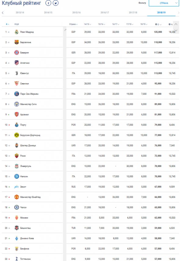 "Шахтар", який поступився "Манчестер Сіті" (0:3) у Лізі чемпіонів, опустився з 11 на 12 місце. Обійти гірників зуміла дортмундська "Борусія", яка розгромила "Атлетіко" (4:0) у ЛЧ.