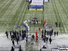 Анатолій Жабченко, тим часом, виводить команди з підтрибунного приміщення на, слава богу, не дуже засніжене поле стадіону