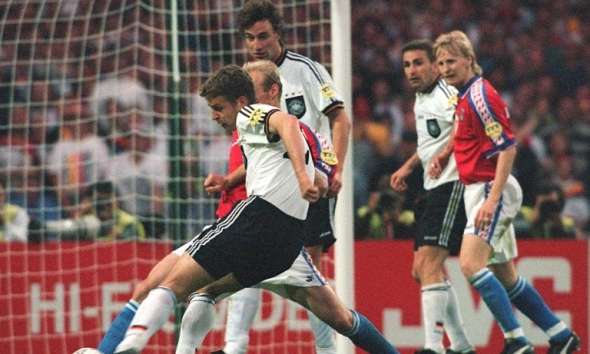 Фінальну гру обидві збірні почали обережно. Лише в другому таймі Заммер збив Поборського, й Бергер реалізував пенальті. Німці згадали, що так уже програвали Данії на минулому Євро. Переломною стала поява на полі Олівера Бірхоффа. За п'ять хвилин після появи на полі той зрівняв рахунок. Чехи могли забити ще, але Кепке упорався із ударом Шміцера. Натомість у додатковий час Бірхофф ударив абияк. Неузгодженість голкіпера і захисника дорого коштувала Чехії. М'яч зрадницьки закотився у сітку - 2:1. "Золотий" гол завершив гру і Євро в цілому. Німеччина стала триразовим чемпіоном Європи.
