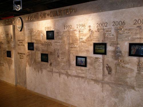 У першому історичному залі можна побачити макет ЦС "Шахтар" зразка 1936-го року і на екранах подивитися різні кінохроніки матчів за участю донецької команди. Всього в музеї п"ять залів, в яких розміщена величезна кількість всіляких експонатів. Є і кінотеатр, де транслюються фрагменти пам"ятних матчів з історії клубу.