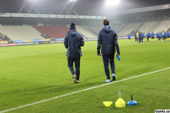 Початок тренування співпав з дощем. Але негода не налякала куратора збірних України Мирона Маркевича. Він бігав кола у костюмі збірної України. На запитання, хто його змусив "займатися за індивідуальною програмою" Мирон Богданович відповів, що це традиція.