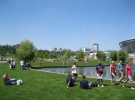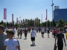 Сьогодні з ранку навколо стадіону "Донбас Арена" панує святкове пожвавлення. Біля стадіону гуляють, п'ють пиво, стоять у чергах за сувенірами і засмагають. Судячи з футбольної і національної символіки левову частку вболівальників становлять росіяни. Найбільш життєрадіснішими і гучними виглядають французи. Вони фотографуються з місцевими жителями і виспівують пісні. Англійці переважно відпочивають на газонах і лавках. Сьогодні в Донецьку температура повітря в тіні + 33.
