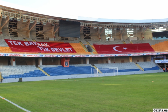 На фасаді стадіону "Істанбула" вивісили величезний прапор Туреччини. У холі, куди заходять команди, на стіні висять портрети Ататюрка та Ердогана (президент країни).