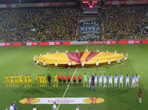 Фан-сектор "Маккабі" ще задовго до матчу голосно підтримував свою команду і бив у барабани. Gate 11, the South Part of Bloomfield – здивували голосисті прихильники їзраїльтян таким плакатом.