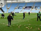Вболівальники, незадоволені результатами своїх команд, протестували проти керівництва клубів і закидали поле пластиковими свинями.