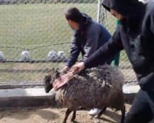 Вболівальники львівських "Карпат" вирішили висловити невдоволення останніми результатами в Чемпіонаті Україні своєрідним способом. Група фанатів клубу приїхала на тренування команд, щоб подарувати гравцям вівцю.