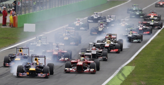 Чинний чемпіон світу Себастьян Феттель здобув 32-ту перемогу у Формулі-1. На Гран-прі Італії пілот Red Bull стартував з поул-позиції і лідирував впродовж більшої частини дистанції. Слідом за ним картатий прапор побачив Фернандо Алонсо. На старті іспанець опинився позаду Веббера і Масcи, але незабаром випередив їх і вийшов на друге місце. Трійку призерів доповнив Марк Веббер. У другій половині дистанції на командному містку Red Bull виникли сумніви в тому, що австралієць зможе завершити заїзд , але в підсумку пілот благополучно фінішував.