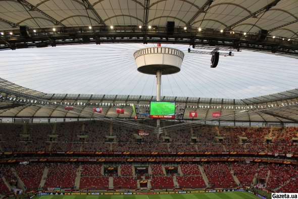 А поки повернемося на "Народовий". Після обіду у Варшаві вийшло сонце і на стадіоні відкрили дах. Вчора під час тренувань команд, він був закритий.