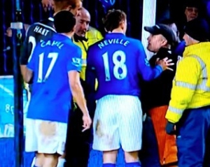 Вболівальник англійського футбольного клубу "Евертон" прикував себе наручниками до штанги воріт своєї команди. Це сталося ввечері 31 січня під час матчу чемпіонату Англії, в якому "Евертон" зустрічався з "Манчестер Сіті". Вболівальнику вдалося простояти біля штанги кілька хвилин, після чого його відстебнули і змусили залишити поле.