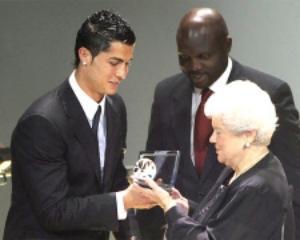 Престижний приз Кріштіану Роналду в понеділок на урочистій церемонії в швейцарському Цюріху вручили вдова Ференца Пушкаша Елізабет і знаменитий ліберійський форвард Джордж Веа.