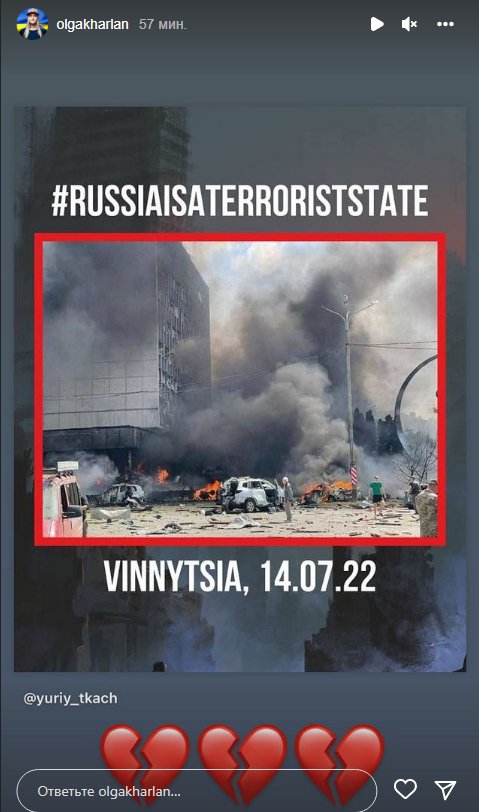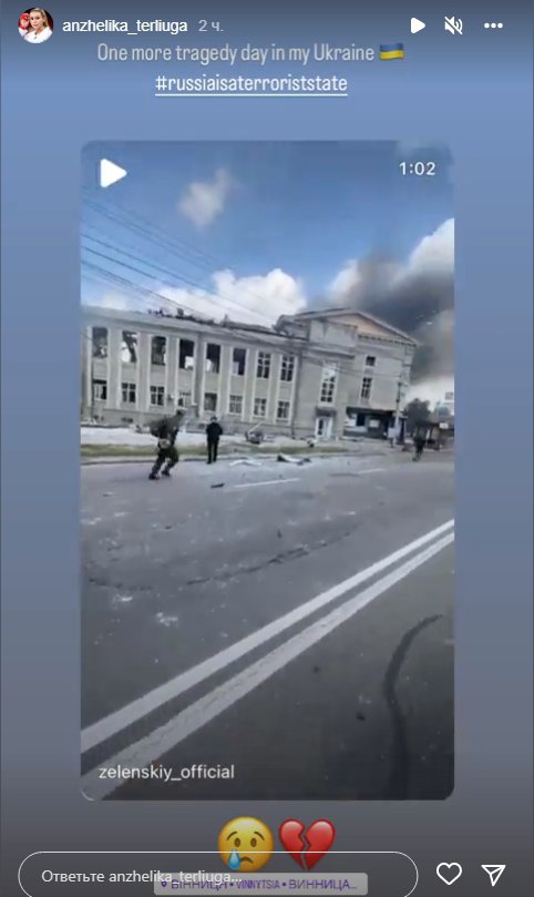 "Сьогодні Росія обстріляла ракетами мою рідну Вінницю. Ракети влучили в центральну частину міста. Постраждали мирні прості люди та діти. Росія – країна терористів. С*ки. Щоб ви кожного дня кишками своїми снідали і вечеряли. Мразота", – прокоментувала дружина футболіста Олександра Зінченка, журналістка Влада Седан.