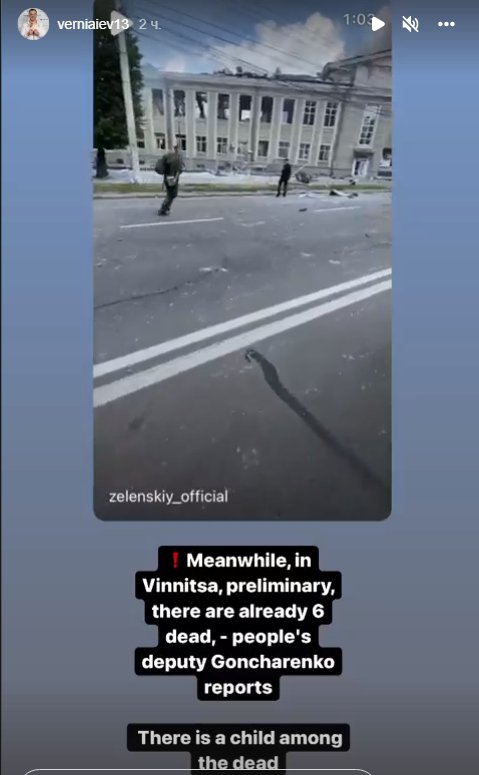 "У Вінниці є загиблі. Серед них дитина", – написав гімнаст Олег Верняєв.