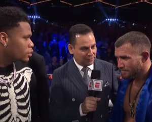Під час післяматчевого інтерв'ю українця американець піднявся на ринг для спілкування з переможцем і можливим суперником у наступному поєдинку, пише vRINGe.com.