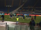 Весь день в Римі з перервами йде дощ, денна температура в межах + 13-15 градусів Але газон "Олімпіко" в дуже пристойному стані. Сидіння на центральній трибуни накриті. Італійські колеги кажуть, що завтра на матчі буде максимум 20 тисяч глядачів, при тому, що стадіон вміщує майже 73 тисячі. Причина проста - на першому місці для вболівальників нині чемпіонат країни, адже команда бореться за зону Ліги чемпіонів.