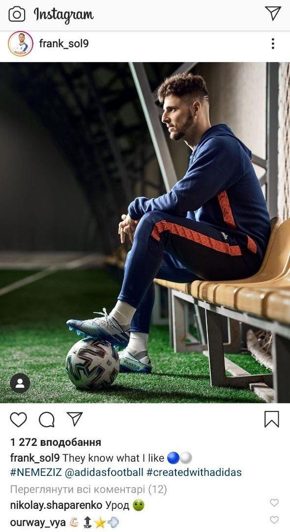 Український хавбек в соціальній мережі Instagram прокоментував фото Соля образливим словом.