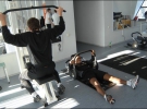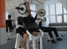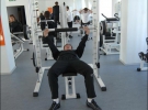 Не забули тренери і про бігові заняття. Фітнес-зал влаштований таким чином, що в самому його центрі є вільне від тренажерів місце, яке можна використовувати для легкоатлетичних занять. На старті бігової доріжки "гірники" спорудили дві тумби, які потрібно було спочатку перестрибнути, а вже потім зробити прискорення до фінішу. Таким чином, поки решта партнерів укріплювала м"язи на тренажерах, хтось один неодмінно бігав.