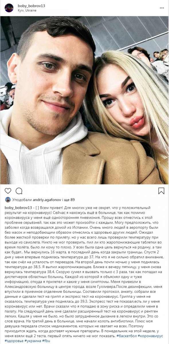 Про хворобу спортсмен сам написав у своєму Instagram.
