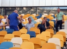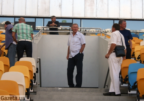 Першим з підтрибунного приміщення з'являється асистент головного тренера Олександр Заваров. У піднесеному настрої, весь час жартує з журналістами. Підходить до м'ячів, що лежать біля кромки поля. Взявши один з них, починає набивати.