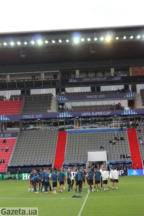 Мюнхенська "Баварія" потренувалась на полі "Еден Арени" напередодні матчу за Суперкубок УЄФА проти лондонського "Челсі". Заняття тривало близько години. Команда працювала без одного зі своїх лідерів Франка Рібері. Француз перебував у Монако, де отримав приз найкращому футболісту Європи минулого сезону.