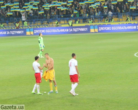 Капітани збірних Якуб Блащіковскі та Руслан Ротань тепло привітали один одного після матчу. Футболками на полі не обмінювалися. Можливо зробили це вже у підтрибунному приміщенні.