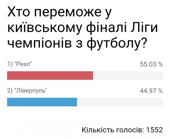 Читачі gazeta.ua визначили переможця Ліги чемпіонів 2017/18. Фінальний поєдинок відбудеться 26 травня у Києві.