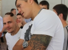 Першим говорить отець Олег Сухінський, духовний наставник Федерації боксу Львівщини. Звертається до боксерів.