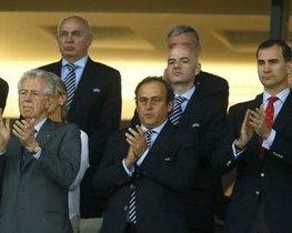 Під час матчу між збірними Італії та Іспанії на трибунах НСК Олімпійський разом з десятками тисяч іноземних вболівальників були п'ять королівських осіб, п'ять президентів, два спікери парламентів, чотири голови та низка членів іноземних урядів.Як відзначили в Міністерстві закордонних справ Україні в неділю ввечері, безпрецедентно велика кількість гостей в Україні під час проведення чемпіонату також яскраво продемонструвало, що в сучасній Європі ідеї політизації спорту не знаходять підтримки у людей.