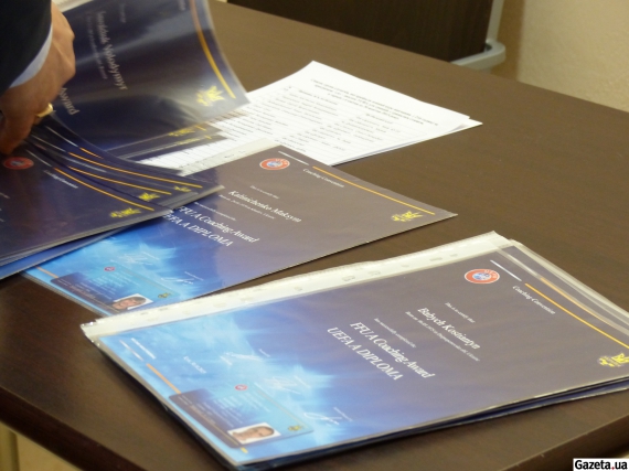 Калініченко, Нагорняк, Тлумак, Шацьких, Єзерський, Рева... Це новоспечені тренери. Деякі з них вже працюють у клубах, але саме сьогодні ці зіркові футболісти отримали дипломи A+B з рук президента Федерації футболу України Андрія Павелка.