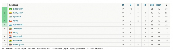 За 4 тури до кінця залишилися три місця, що гарантують потрапляння на Кубок світу-2018 від Південної Америки, посіли Колумбія, Уругвай і Чилі.