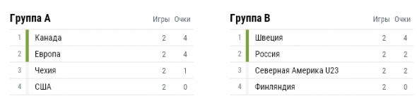 Збірні Канади і Європи зіграють у середу між собою і визначать, хто з них вийде в півфінал з першого місця.