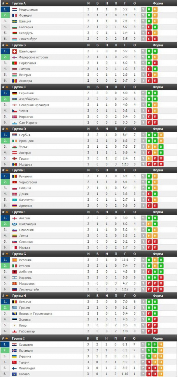 Суперник збірної України в групі I, збірна Ісландії, на своєму полі забила два м'ячі туркам. В іншій парі цієї групи Хорватія на виїзді мінімально обіграла збірну Фінляндії, 1:0. Збірна України, нагадаємо, здобула першу перемогу у відборі, розтрощивши на "домашньому" полі краківського стадіону "Краковія" команду Косова, 3:0.