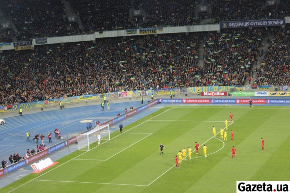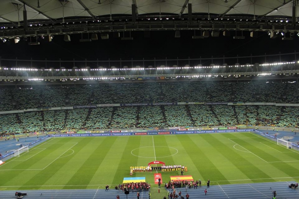 Дуже круту хвилю вболівальники запустили на "Олімпійському" - з синьо-жовтими паперовими прапорами. Виглядало ефектно.