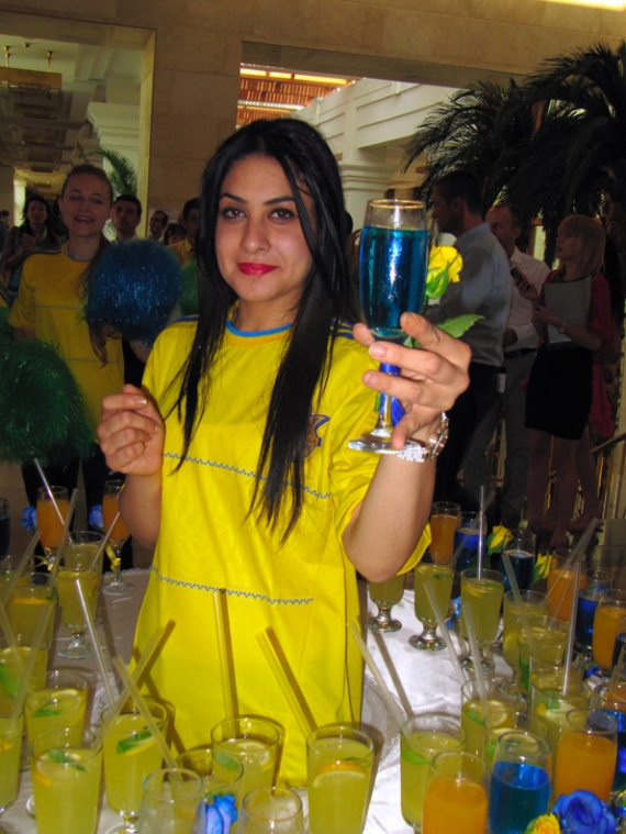 Прямо на порозі тренерам, гравцям і їхнім дружинам пропонували безалкогольний коктейль - також в українських традиційних кольорах. До заходів зустрічі з радістю долучилися земляки, які відпочивають в готелі.