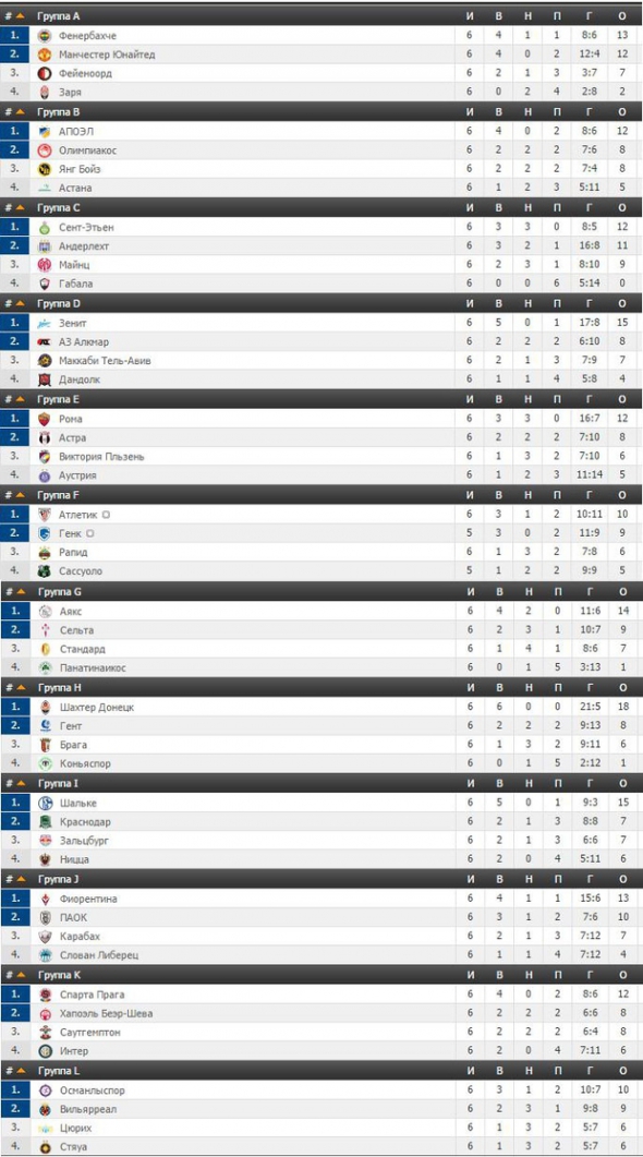 47 команд в 12 групах провели чергові матчі престижного футбольного клубного першості. Матч "Сассуоло" - "Генк" перенесений на п'ятницю через сильний туман.