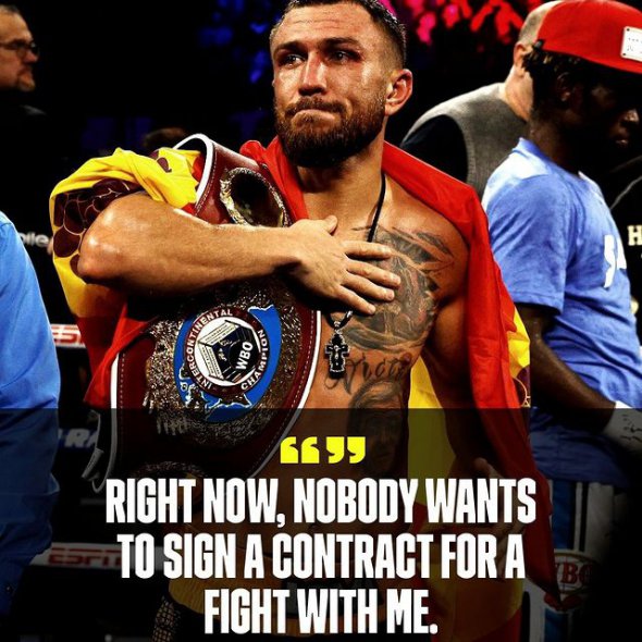 "Зараз ніхто не хоче підписувати контракт на бій зі мною", - написав в Instagram Ломаченко.