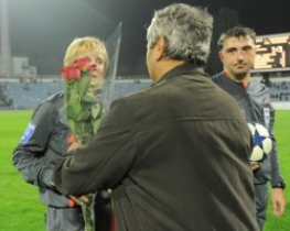 А в суботу, 15 жовтня, Мірча Луческу зробив це в реальності. Наталія Рачинська, звичайно, зніяковіла, почервоніла, але з усього було видно, що їй приємна така увага.