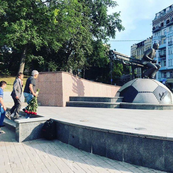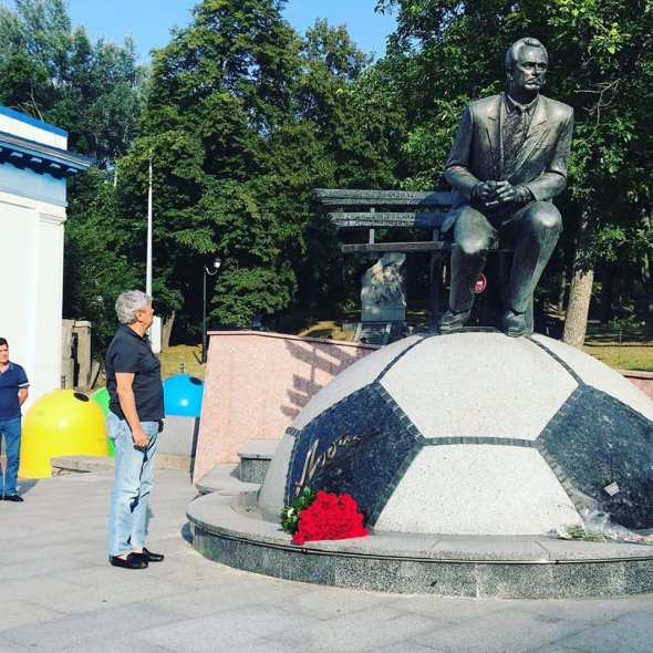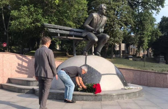 Головний тренер "Динамо" Мірча Луческу поклав квіти до пам'ятника Валерію Лобановському.