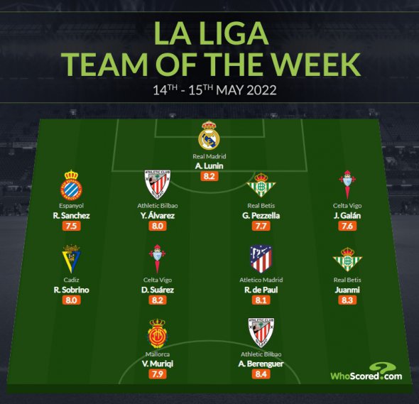 Андрія Луніна визнали одним із найкращих гравців 37-го туру іспанської Ла Ліги.