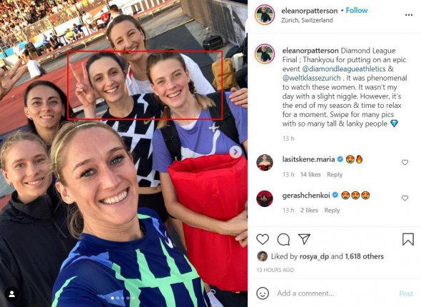 Скандальне фото, зроблене у швейцарському Цюриху після фіналу Діамантової ліги, опублікувала австралійська стрибунка Елінор Паттерсон.
