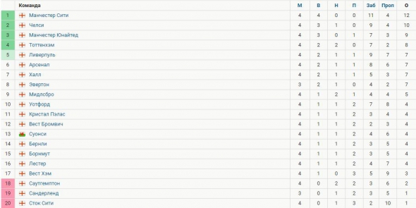 "Манчестер Сіті" з 12 очками зберіг лідерство в першості Англії, "Манчестер Юнайтед" з дев'ятьма залишився на третій позиції.