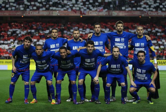 БАРСЕЛОНА: Вальдес, Дані Алвес, Піке, Маскерано, Адріано (Пуйоль, 85), Хаві (Санчес, 82), Бускетс, Іньєста, Педро, Мессі, Фабрегас (С. Кейта, 69).