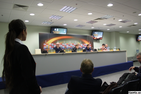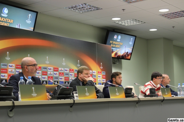 Після цього до наставника "Гента" посипалися питання від бельгійської та української преси. Цікаво, що Хейн відповідав англійською. Говорив доволі розгорнуто, багато жартував і закидав "Шахтар" компліментами.
