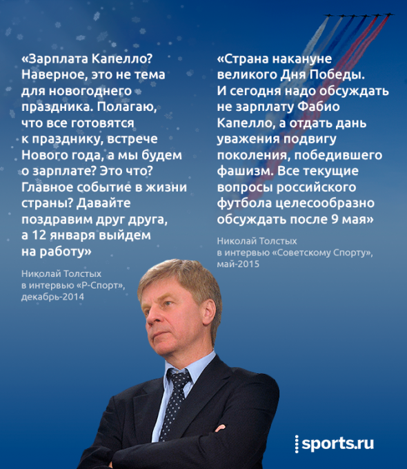 Головний тренер збірної Росії Фабіо Капелло висловив обурення заявою президента РФС Миколи Толстих з приводу заборгованості по зарплаті.