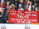 Крім куль на трьох трибунах "Енфілда" глядачі виклали з плашок слова "Справедливість", "Правда" і цифру "96".