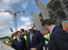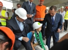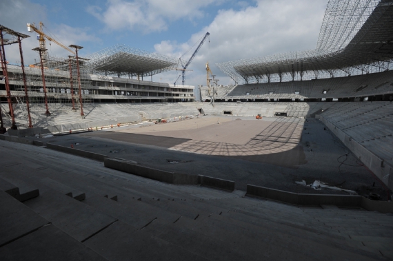 Сьогодні на стадіоні встановили перше сидіння. Пластикове крісло синього кольору прикріпили мер Львова Андрій Садовий і віце-прем'єр-міністр України Борис Колесніков.