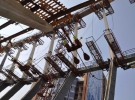 Паралельно із закріпленням верхніх вантів, адаптери нижніх вантів поступово підтягуватимуть до нижніх балок каркасу, після чого їх також приєднають до колон.