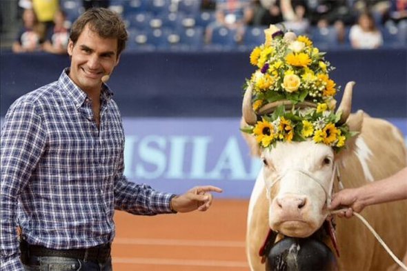 Легендарному тенісисту Роджеру Федереру двічі дарували корову під час його виступів.