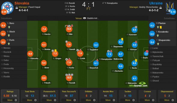 Найвищу оцінку в матчі отримали вінгери збірної Словаччини Роберт Мак і Альберт Руснак (8,0).